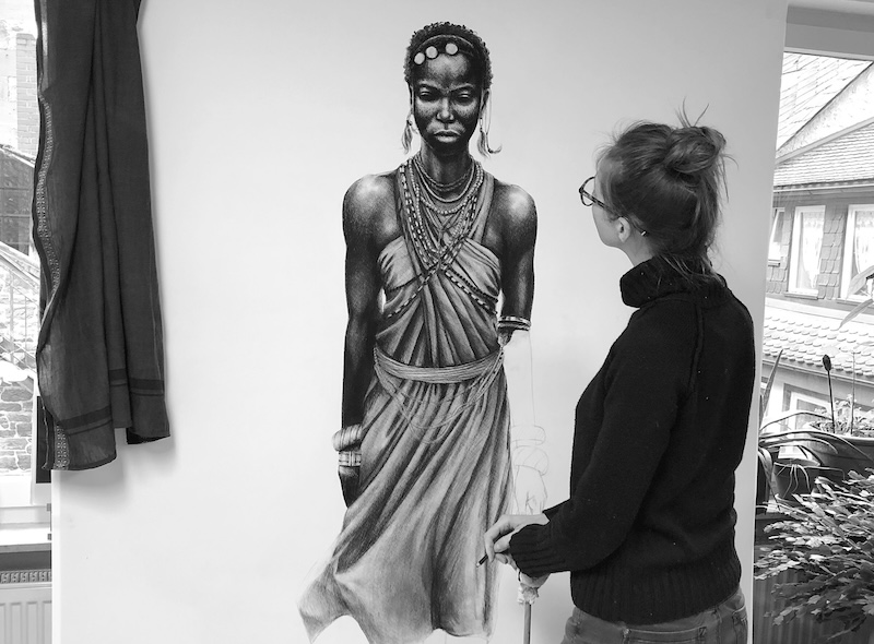 Ich begegnete den Massai in den 90er Jahren, bei einer musikalischen Reise nach Südafrika. Damals war ich 14 Jahre alt und nachhaltig fasziniert und berührt von den Eindrücken und Begegnungen mit dem Land sowie den Menschen und Tieren. Rund 2 Millionen Massai leben heute in Kenia und Tansania. Sie leben in Verbundenheit zur Natur, in einer traditionellen Lebensweise, als Halbnomaden, Viehzüchter und mit einem ausgeprägten Kriegerkult. Sie bewahren ihre Kultur und Geschichte als lebendige Wertschätzung und geben diese an ihre Kinder weiter. Frauen befinden sich noch primär in der Mutterrolle und haben dafür zu sorgen, dass die Traditionen fortgeführt werden. Diese Rolle möchte ich auf subtile Weise aufbrechen und ihr meine persönlichen Gedanken hinzufügen.